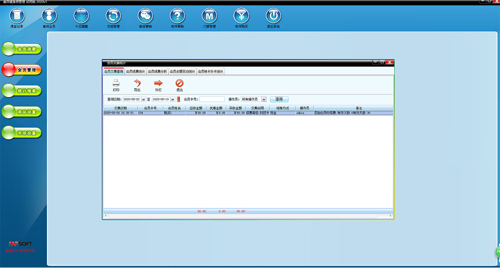 美萍健身房管理系统是一款专业的健身俱乐部管理软件,系统界面简洁优美,操作直观简单,无需专门培训 即可上手操作,美萍健身会所管理软件根据健身俱乐部日常工作流程而特别设计,可以满足健身会所经营过程的 会员管理,收费管理,健身教练管理,门禁管理的多种管理要求,是健身房,健身俱乐部,健身会所进行信息化管理,提高工作效率和顾客满意度不可获缺的强大工具。